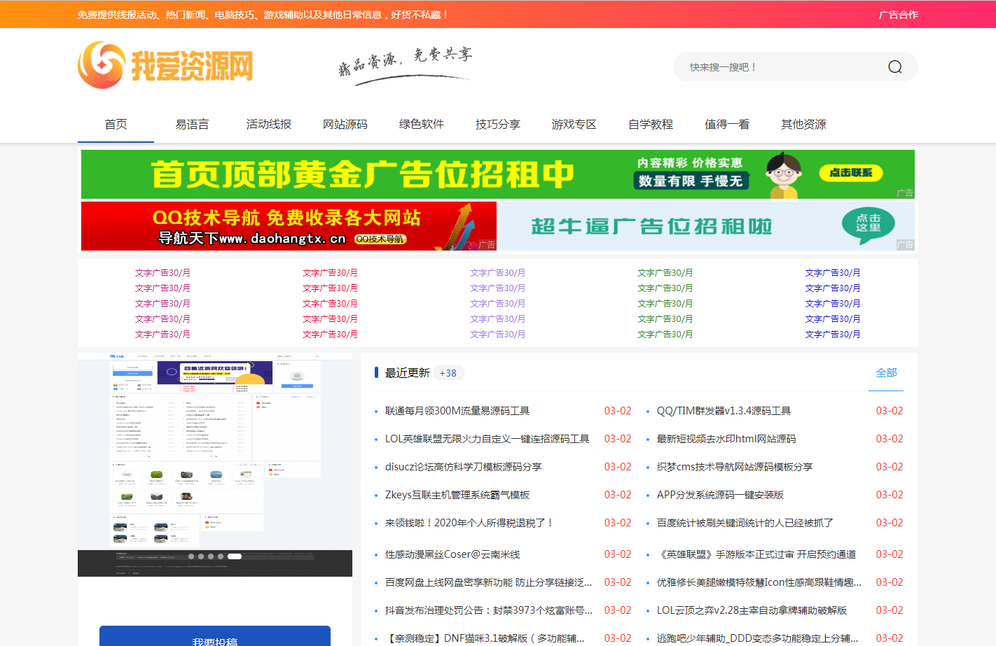 直接访问 类似网站 我爱资源网 - 专注活动,软件,教程分享 - 总之就是网络那些事 站点名称: 我爱资源网 网址链接: http://www.52zywang.com 网站打分: 网站语言: 简体中文 所属分类: 资源 收录时间: 2020年10月29日 站长QQ: 806289150 累计点击: 8746人次 编辑人员: admin 百度权重: 搜狗权重: SEO查询: 立即查看 网站介绍 我爱资源网提供最新QQ活动、QQ技巧、QQ软件、热门游戏辅助、网络最新新闻、努力打造为一个最全QQ活动网,还有电脑技巧以及其他日常信息 游戏资讯等 让我们的Q生活更加精彩。 网站标签 我爱资源网,网赚,爱Q生活网,小刀娱乐网,网赚资源,游戏赚钱,QQ资源,我爱辅助,辅助网,QQ活动,QQ活动网,爱Q网,QQ新闻,QQ技巧,免费QQ活动 人气走势