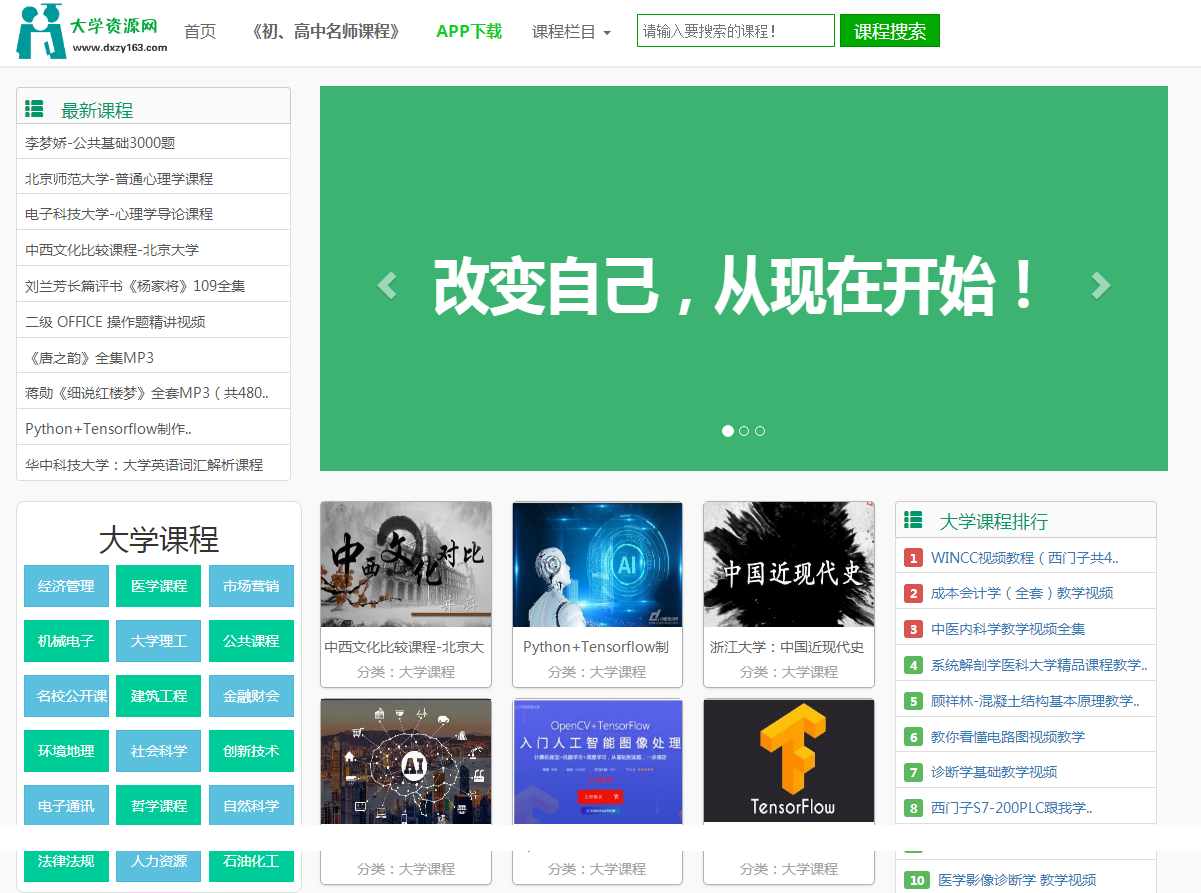 直接访问 类似网站 大学资源网 - 在线教育 站点名称: 大学资源网 网址链接: http://www.dxzy163.com 网站打分: 网站语言: 简体中文 所属分类: 学习 收录时间: 2020年11月04日 站长QQ: 暂无 累计点击: 584人次 编辑人员: admin 百度权重: 搜狗权重: SEO查询: 立即查看 网站介绍 大学资源网致力于为每个希望提升自己能力的人提供学习平台,通过这个平台每个人都有平等提高自己能力的机会,主要学习资源有:大学课程、中学课程、小学课程、管理课程培训等视频教程! 网站标签 大学资源网,高中课程,初中课程网 人气走势