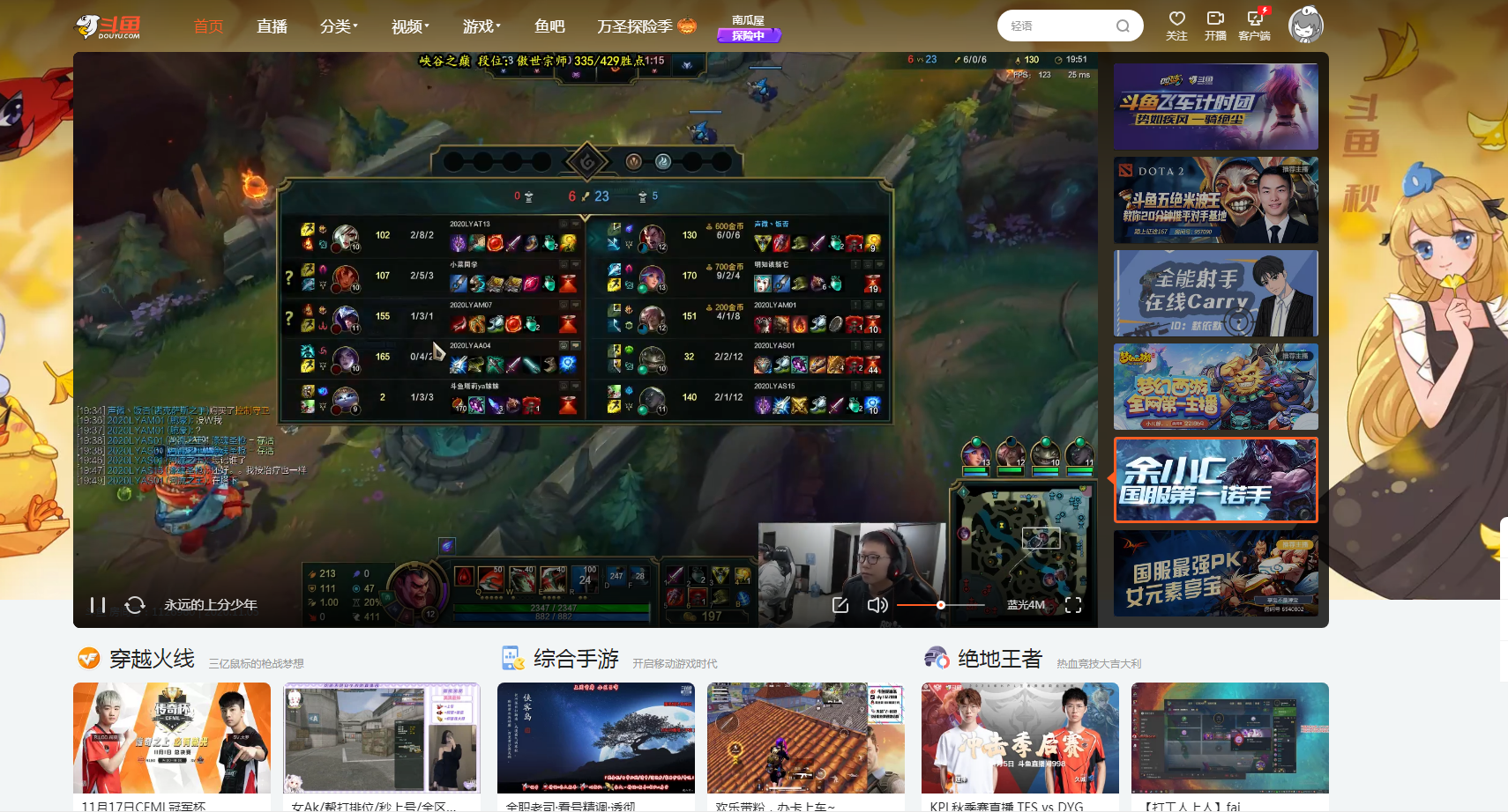 斗鱼 - 每个人的直播平台提供高清、快捷、流畅的视频直播和游戏赛事直播服务,包含英雄联盟lol直播、穿越火线cf直播、dota2直播、美女直播等各类热门游戏赛事直播和各种名家大神游戏直播,内容丰富,推送及时,带给你不一样的视听体验,一切尽在斗鱼 - 每个人的直播平台。