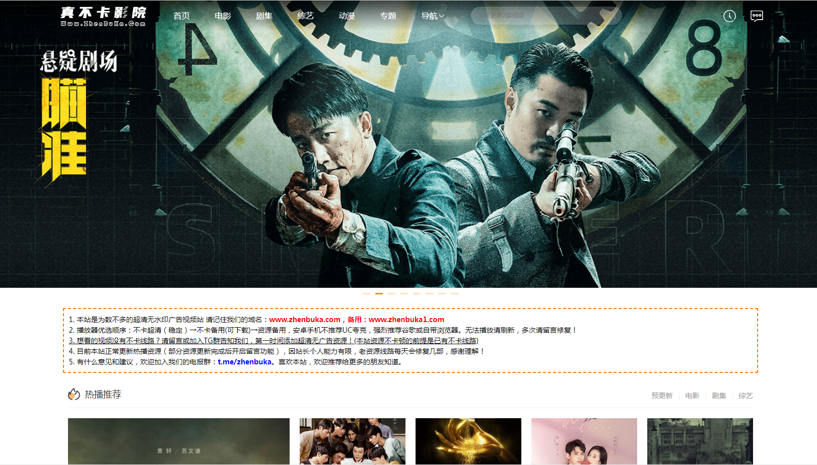 直接访问 类似网站 真不卡影院 - 我不卡影院 - 真正不卡的超清电影网站 站点名称: 真不卡影院 网址链接: http://www.zhenbuka3.com 网站打分: 网站语言: 简体中文 所属分类: 影视 收录时间: 2020年11月05日 站长QQ: 暂无 累计点击: 21471人次 编辑人员: admin 百度权重: 搜狗权重: SEO查询: 立即查看 网站介绍 真不卡影院(www.zhenbuka.com)搜集最新电影、高清电影、超清蓝光电影等视频免费分享给大家在线观看,真不卡影院是一个真正我不卡的电影网站。 网站标签 真不卡电影网,我不卡影院,不卡的电影网,超清蓝光在线 人气走势