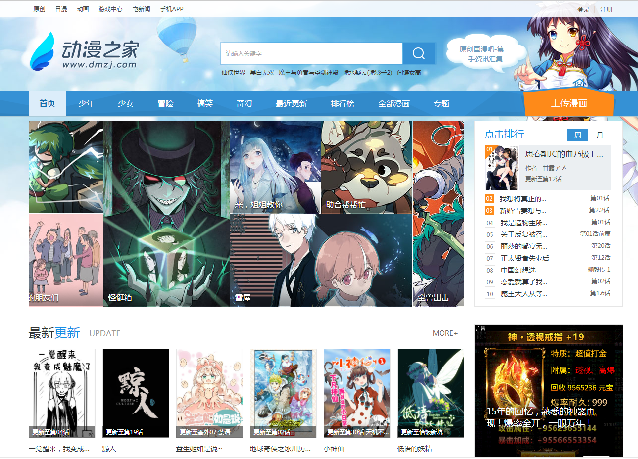 直接访问 类似网站 动漫之家 - 漫画 在线漫画 原创漫画 漫画大全 站点名称: 动漫之家 网址链接: http://www.dmzj.com 网站打分: 网站语言: 简体中文 所属分类: 动漫 收录时间: 2020年11月05日 站长QQ: 暂无 累计点击: 1792人次 编辑人员: admin 百度权重: 搜狗权重: SEO查询: 立即查看 网站介绍 动漫之家是国内最全最专业的在线漫画、原创漫画、最好看的动漫网站,每周更新各种原创漫画、日本动漫,动画片大全、漫画大全、好看的漫画尽在动漫之家漫画网。 网站标签 漫画,在线漫画,原创漫画,日本动漫,动画片大全,好看的动漫,好看的漫画,漫画网,动漫网,动漫之家 人气走势