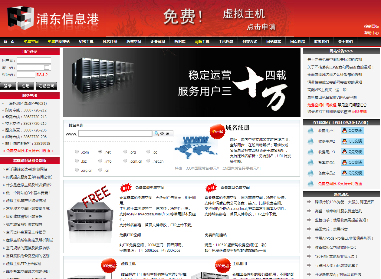 浦东信息港 - 免费免备案虚拟主机空间,免费ASP|.NET空间申请,免费FTP|PHP空间申请,免费智能自助建站,国际域名注册申请,免费国内|海外|美国全能论坛主机|主页空间申请,服务器租用托管