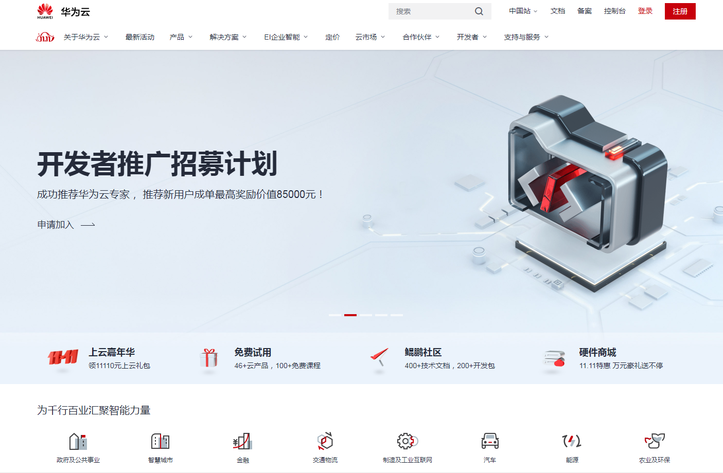 直接访问 类似网站 华为云 - 提供云计算服务 +智能,见未来 站点名称: 华为云 网址链接: http://www.huaweicloud.com 网站打分: 网站语言: 简体中文 所属分类: 站长 收录时间: 2020年11月07日 站长QQ: 暂无 累计点击: 267人次 编辑人员: admin 百度权重: 搜狗权重: SEO查询: 立即查看 网站介绍 华为云为用户提供云服务器,云数据库,云存储,CDN,大数据,云安全等公有云产品和电商,金融,游戏等多种解决方案,7x24小时客服支持,帮助企业轻松上云-华为云 网站标签 华为云,云主机,云服务器,云数据库,云计算 人气走势