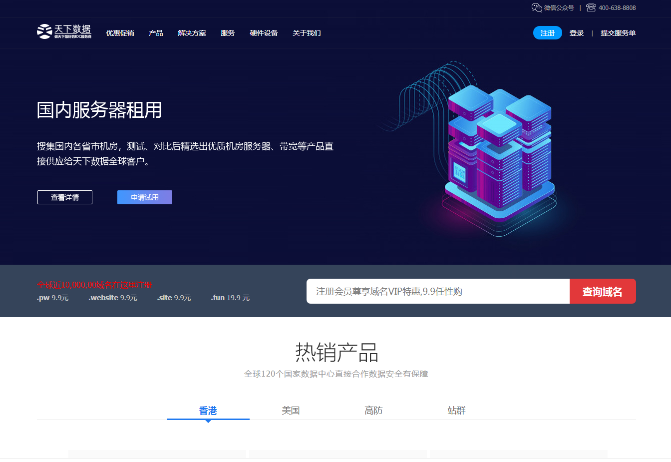 天下数据成立于2003年,已与全球120多个国家顶级机房达成战略合作关系,提供香港服务器租用、美国服务器租用、高防CDN、DDos高防ip、站群服务器、高防服务器、韩国服务器、新加坡服务器等租用解决方案服务。