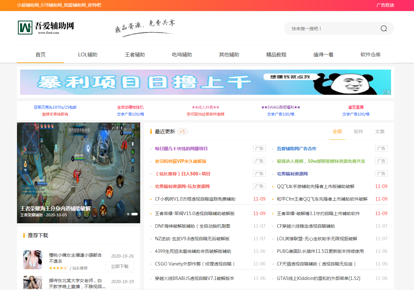 吾爱辅助网 - 我爱辅助网_678辅助网_小超辅助网_和平精英,王者荣耀,LOL英雄联盟,CSGO辅助的聚合基地!