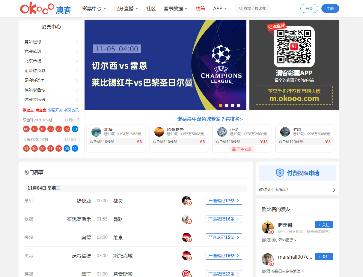 直接访问 类似网站 澳客彩票网 - 专业的彩票和体育数据服务平台 站点名称: 澳客彩票网 网址链接: http://www.okooo.com 网站打分: 网站语言: 简体中文 所属分类: 彩票 收录时间: 2020年11月04日 站长QQ: 暂无 累计点击: 455人次 编辑人员: admin 百度权重: 搜狗权重: SEO查询: 立即查看 网站介绍 澳客彩票网是国内运营时间最长的专业彩票网站,我们专注于为中国投注者提供合法且精准的体彩和福彩竞猜赛程、做单验证、比赛和赛事数据、比分直播、开奖播报以及投注社区服务。 网站标签 澳客,澳客彩票网,okooo,aoke,足彩网,足彩网竞彩,比分直播网 人气走势