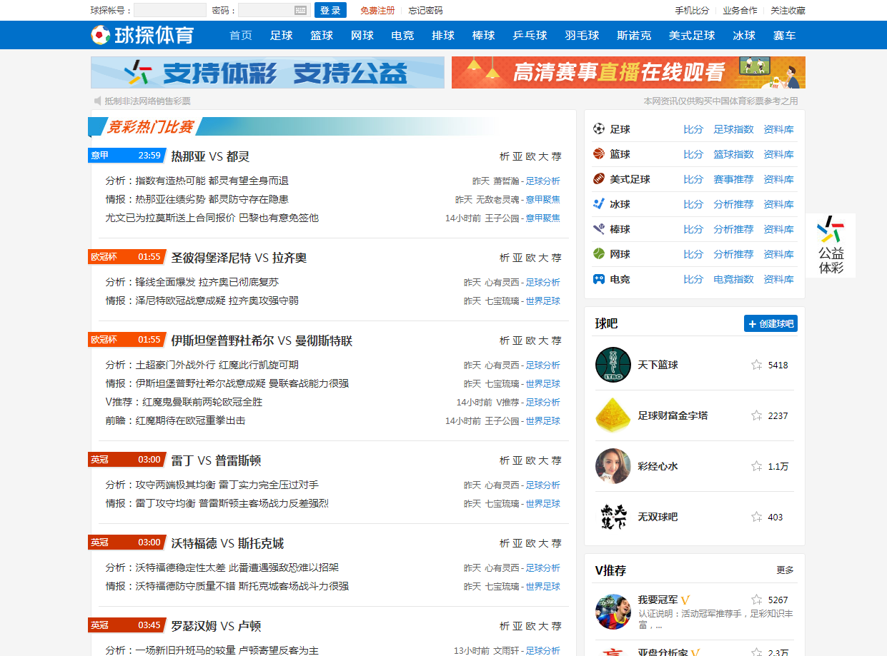 直接访问 类似网站 球探体育 - 足球比分_篮球比分_即时比分直播 站点名称: 球探体育 网址链接: http://www.win007.com 网站打分: 网站语言: 简体中文 所属分类: 彩票 收录时间: 2020年11月04日 站长QQ: 暂无 累计点击: 361人次 编辑人员: admin 百度权重: 搜狗权重: SEO查询: 立即查看 网站介绍 球探体育为您提供最快最全最准的足球比分、篮球即时比分,更有世界范围内各大足球、篮球赛事比分直播、赛程积分、数据分析等专业体育数据。 网站标签 足球比分,篮球比分,比分直播,即时比分直播 人气走势