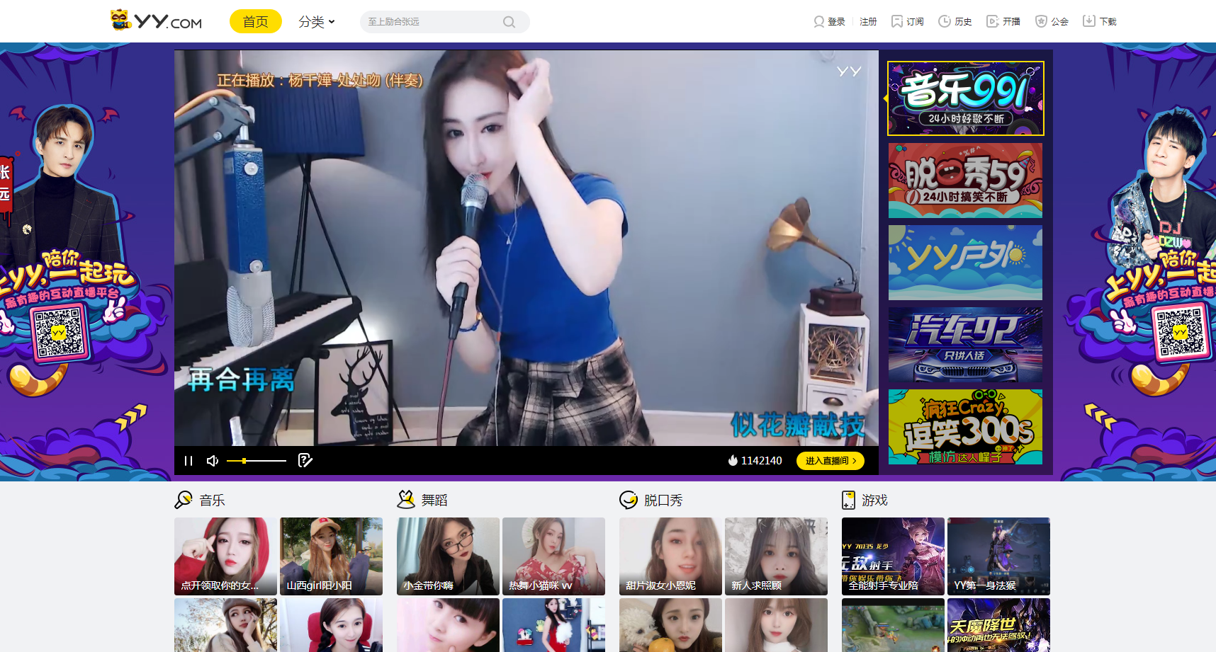 直接访问 类似网站 YY直播 - 全民娱乐的互动直播平台 站点名称: YY直播 网址链接: http://www.yy.com 网站打分: 网站语言: 简体中文 所属分类: 直播 收录时间: 2020年11月05日 站长QQ: 暂无 累计点击: 3898人次 编辑人员: admin 百度权重: 搜狗权重: SEO查询: 立即查看 网站介绍 YY致力于打造全民娱乐的互动直播平台,以多样的美女互动、优质的直播内容、极致的互动体验,满足用户音乐、舞蹈、户外等直播及绝地求生、王者荣耀等热门游戏直播的观看需求。 网站标签 yy,直播,音乐,舞蹈,户外,脱口秀,二次元,mc,游戏,ASMR,小视频,神曲,吃鸡,购物,电影,绝地求生,王者荣耀 人气走势