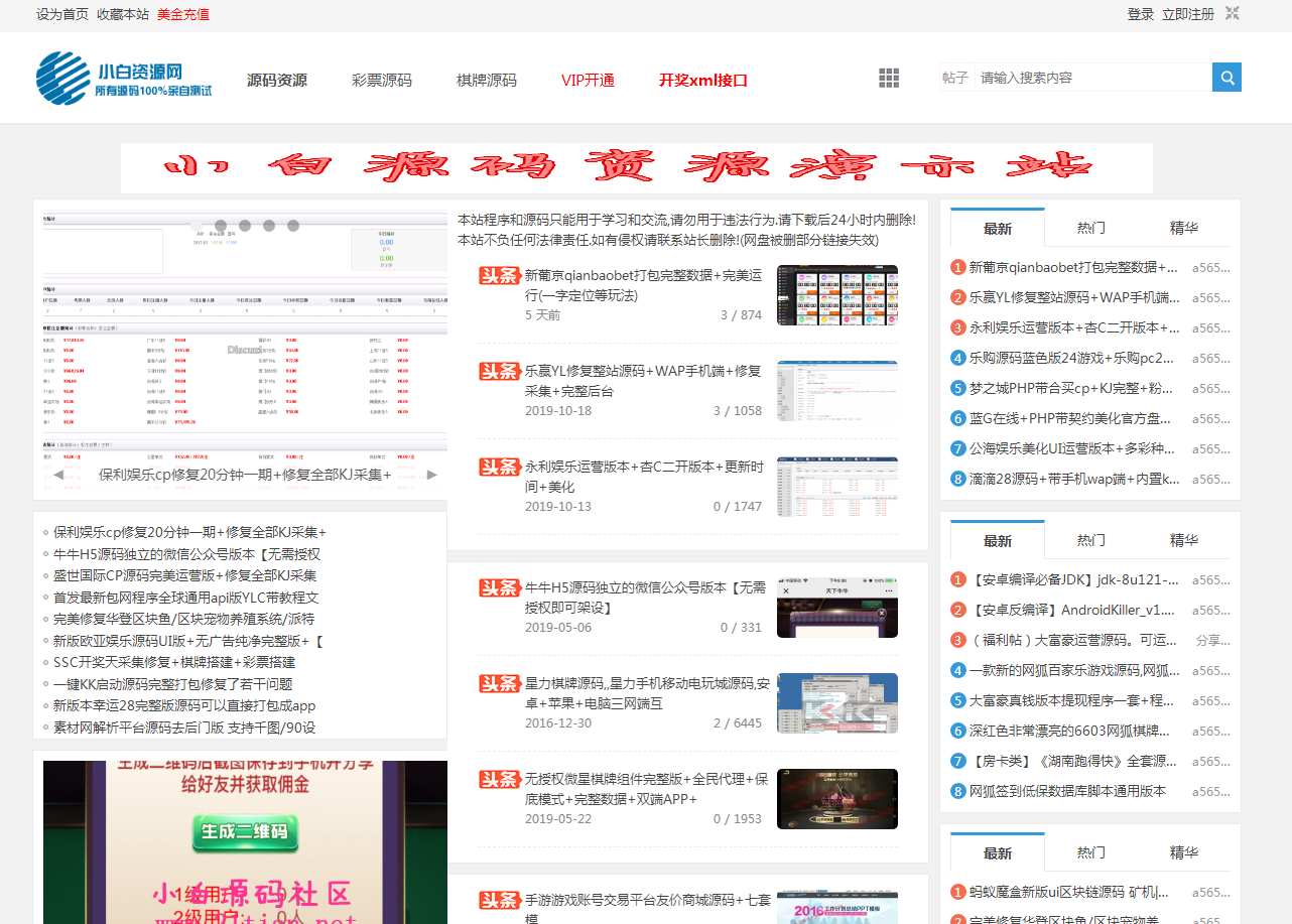 国内权威网络小白源码论坛自开始运营已经将近七年了,我们一直专注源码分享主要提供棋牌源码,菠菜源码程序!
