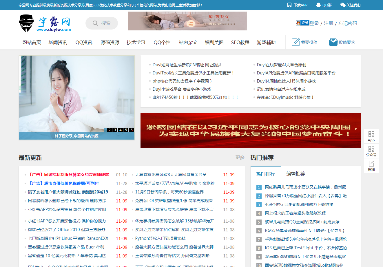 宇露网是由网络红人杜宇露创建一家以提供最新最快质量最高的百度seo优化及新闻技术资源分享网站,每天更新 百度seo优化技巧经验教程,QQ活动,最新新闻资讯,技术活动以QQ个性化的网站,让热爱网络的朋友学到更多。力争超越爱Q生活网,qq技术导航,小k娱乐网,零度娱乐网,小刀娱乐网做全网最大资源分享乐园网站。