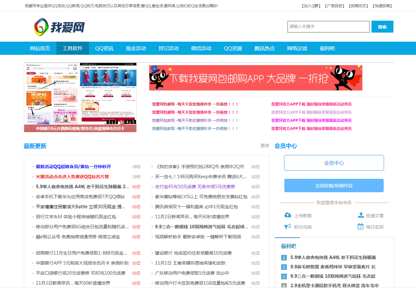 我爱网专注于发布最新活动资讯分享精品软件,提供我爱网一键签到安卓APP,我爱网一键签到IOS苹果版,我爱网QQ飞车/穿越火线CF游戏礼包领取以及一键加速,提供最新QQ活动,QQ技术,qq星钻,qq等级加速器等。全力打造最全的QQ活动资讯网,开发最简单易用的QQ原创工具,让你在最短时间上手成为QQ达人.