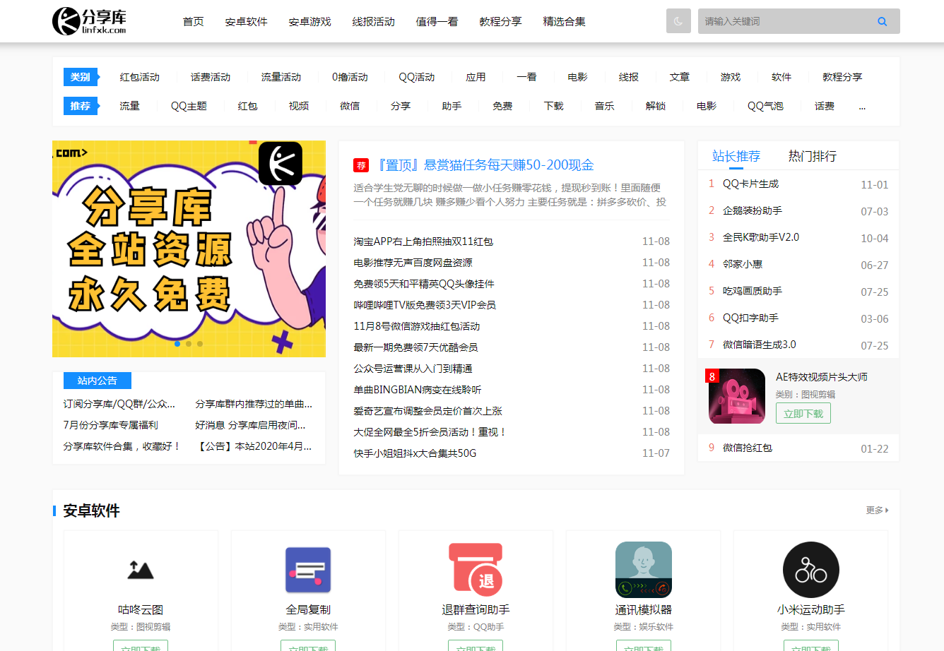 分享库 - 免费分享实用软件|资源|游戏|活动|教程|Lin&林哥|分享网